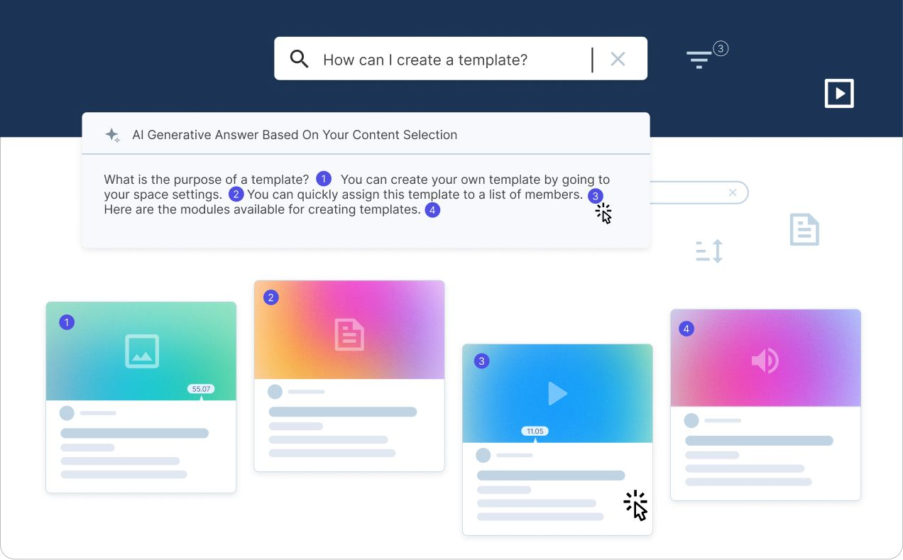 Bénéficiez d'un moteur de recherche capable d'aller chercher dans tous vos contenus, quel que soit le format : texte, image, audio, vidéo et document. Ce moteur de recherche vous permettra d'avoir à la fois une réponse synthétique et une pertinence de résultats sur l'ensemble (ou partie) de vos contenus.